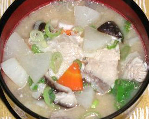 - 沸騰したらアクを取り酒粕を入れ、フタをし弱火で野菜が柔らかくなるまで煮ます。