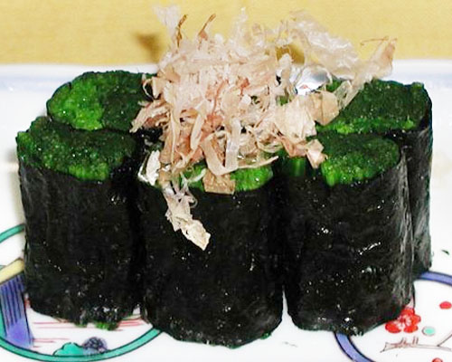 器に立てる様に盛り、上に削り節を盛って出来上がり。