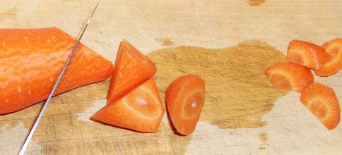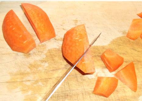 - 玉ねぎ・にんじん・ジャガイモを入れ軽く塩・コショウをし、お好みでタイム・ローリエを入れ炒めます。