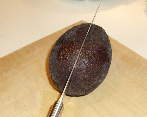 アボカド1個は縦にぐるっと1周切れ目を入れます。