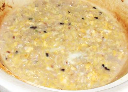 大きな具は取り出し、出汁(ダシ)にご飯を入れ、塩や醤油で薄めに味を調えます。ご飯がお好みの柔らかさになったら卵でとじます。小口切りのねぎを散らして頂いても美味しいです。召し上がる時に、途中でポン酢やコショウで味に変化をつけても美味しいです。