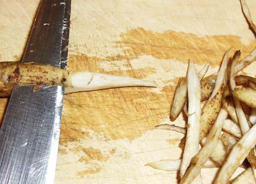 スライサーで薄切りや千切りにして頂いても大丈夫です。ササガキにしたものを水につけてアクを出すと、出来上がりが黒くなりません。