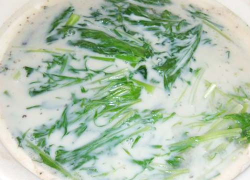 - 葉物が色鮮やかになったら豆乳を加えます。