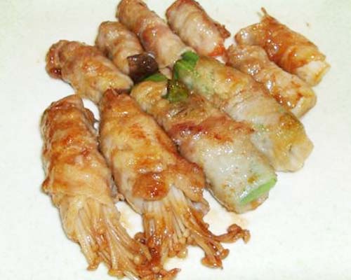 ブロッコリーは、茎の部分にだけ豚肉を巻きます。えのきやにんじん・インゲン・モロッコインゲン・アスパラガス等は長ねぎ位の太さになる量を巻きます。アルミホイルを広げた上でこの作業をすると後片付けが楽です。