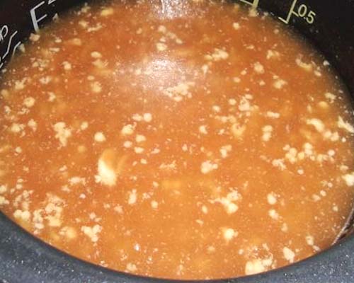 ①を汁ごと、水加減をした米の上にのせ、ざっと混ぜます。