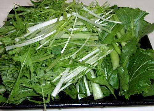 青菜はかぶの葉・せり・根三つ葉・水菜・壬生菜・小松菜・青梗菜等お好みで。 - 肉類は、豚バラスライス・豚ももスライス・鶏むね肉・鶏もも肉等。