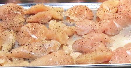 鶏のささみを開き、軽く塩・コショウをし、片栗粉を薄く全体にはたきます。