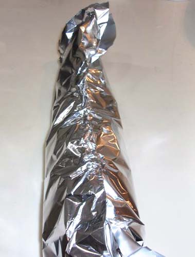 アルミホイルの上下を合わせて折りたたみ、左右を上に持ち上げ折ります。 - オーブントースターの天板に②を置き、オーブントースターで10~15分焼きます。